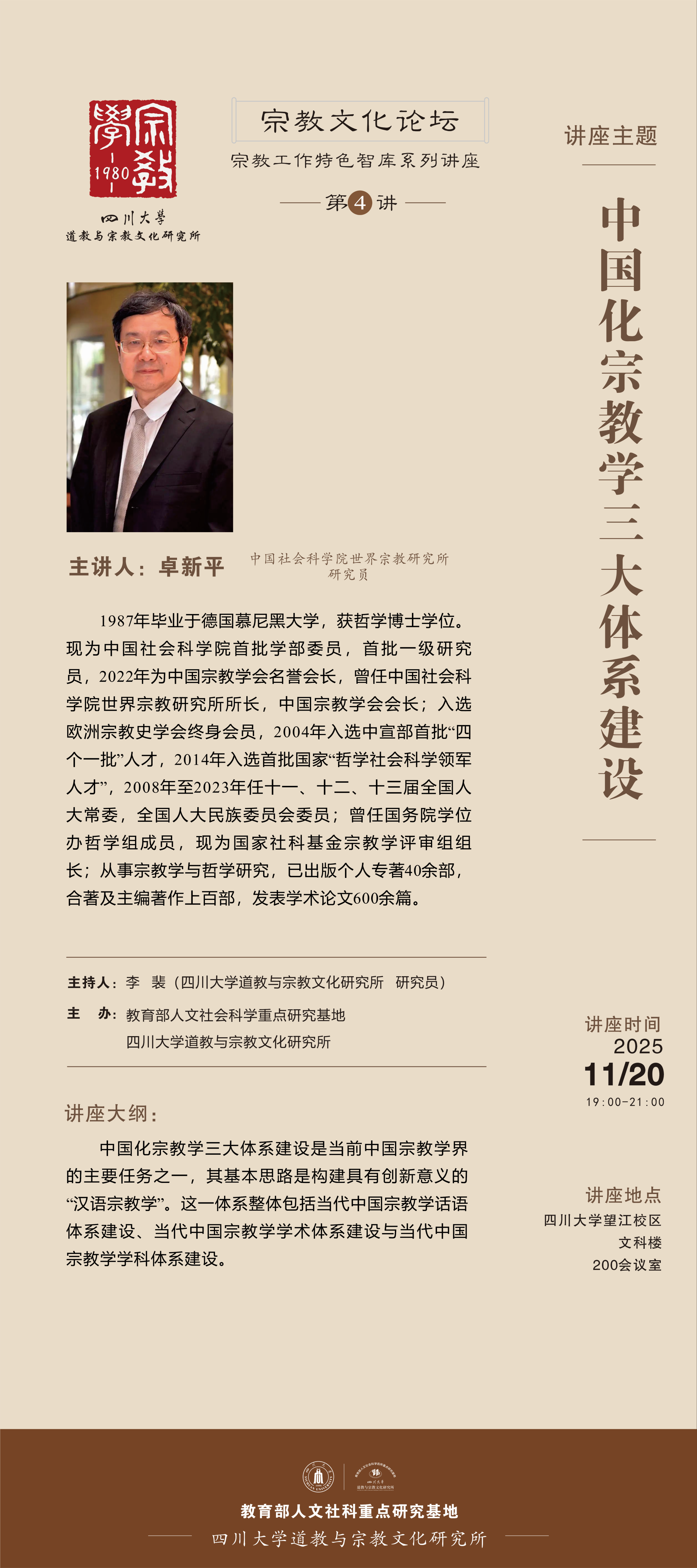 预告|卓新平:中国化宗教学三大体系建设