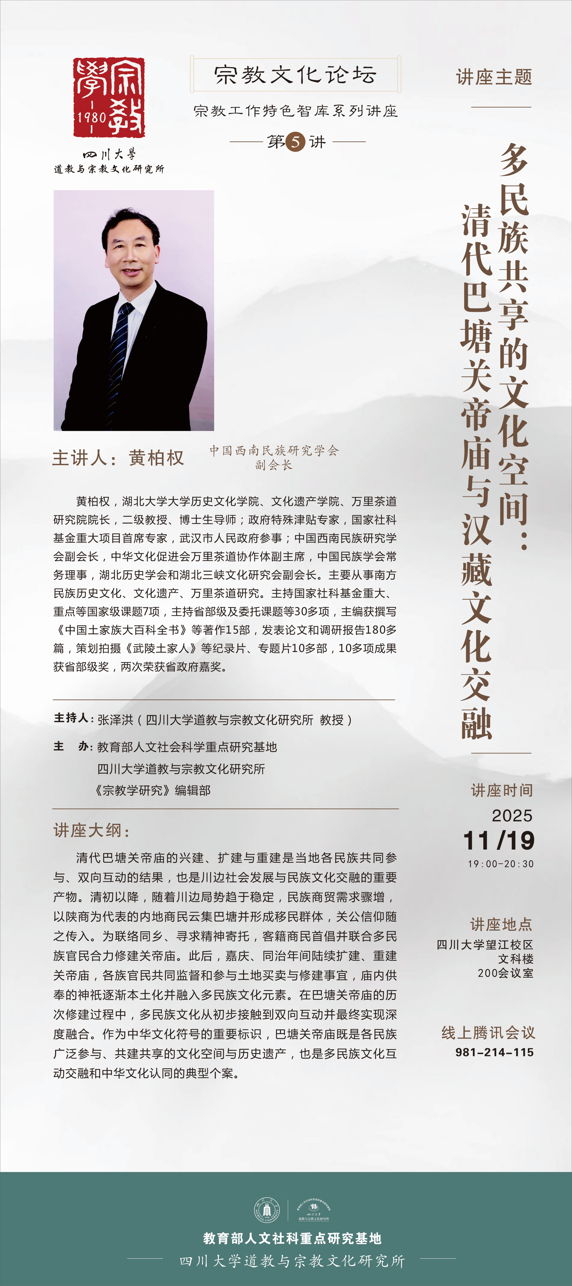 预告|黄柏权:多民族共享的文化空间:清代巴塘关帝庙与汉藏文化交融