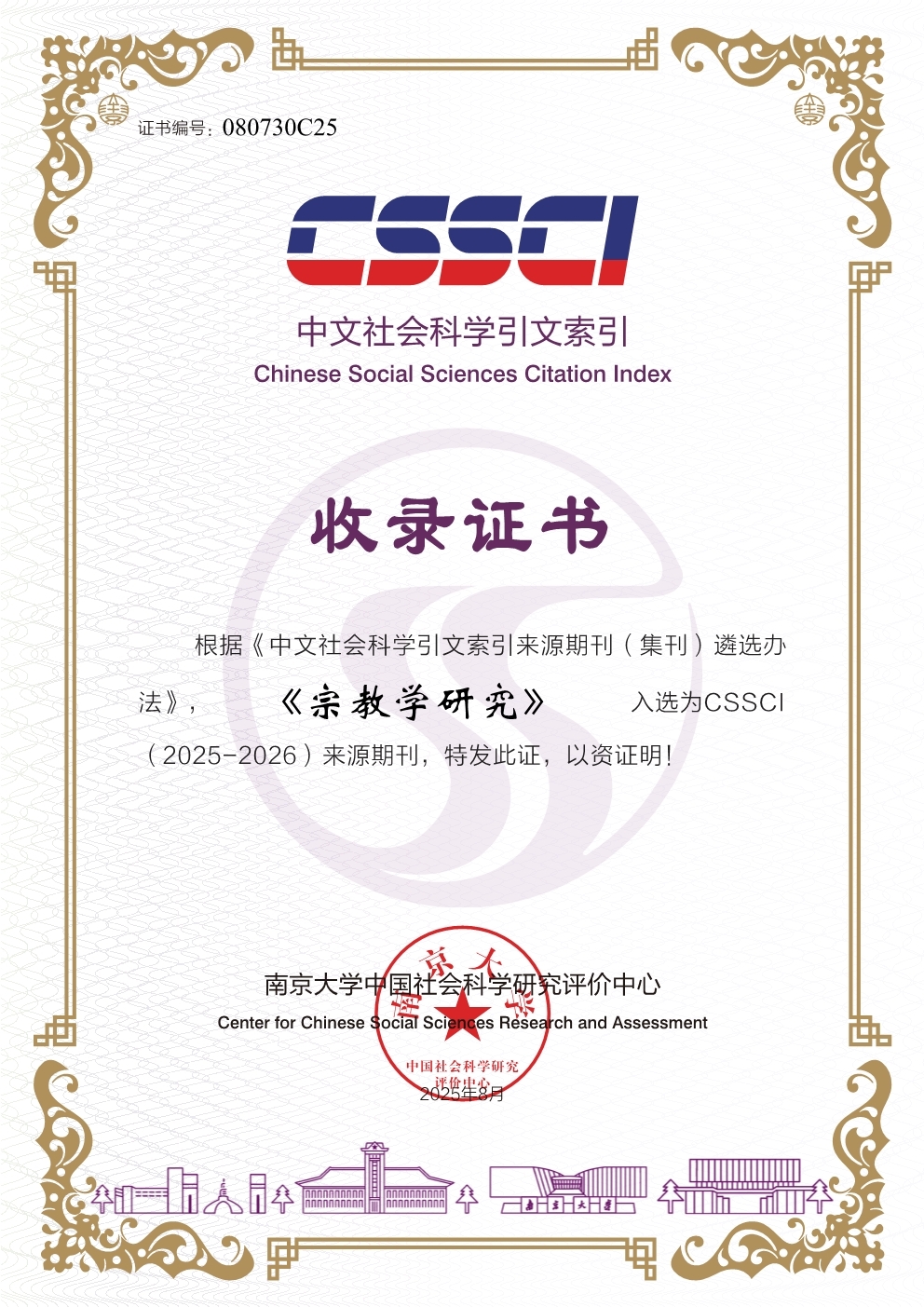 《宗教学研究》入选“CSSCI(2025-2026)来源期刊”证书