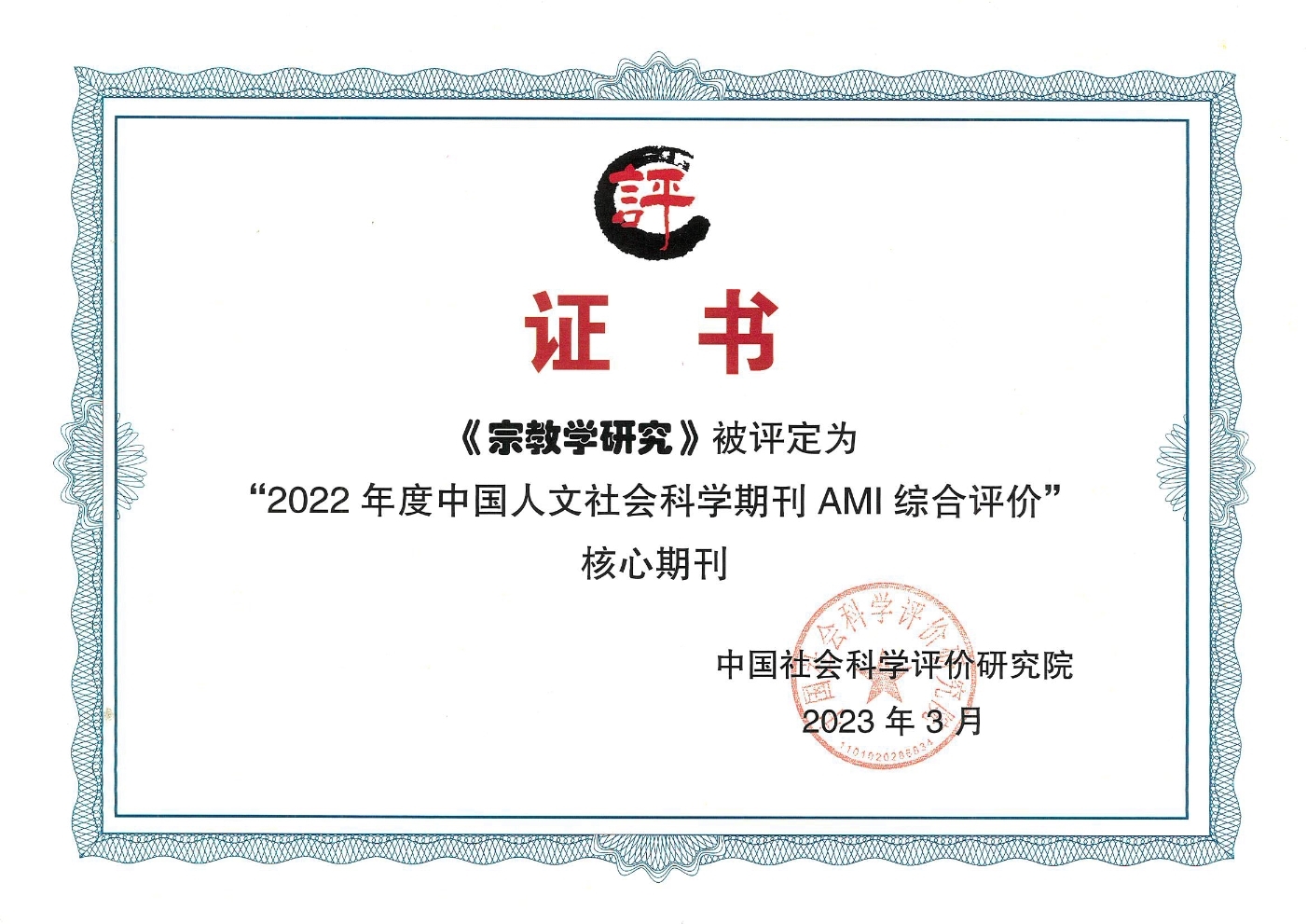 《宗教学研究》被评定为“2022年度中国人文社会科学期刊AMI综合评价核心期刊”